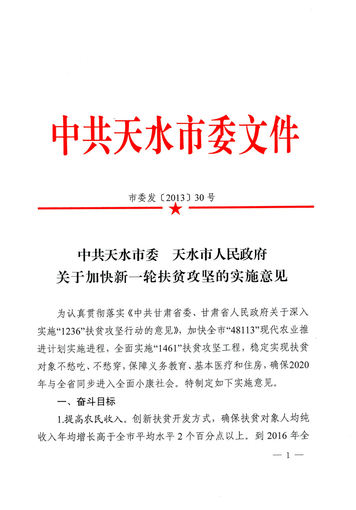 中共天水市委 天水市人民政府关于加快新一轮扶贫攻坚的实施意见