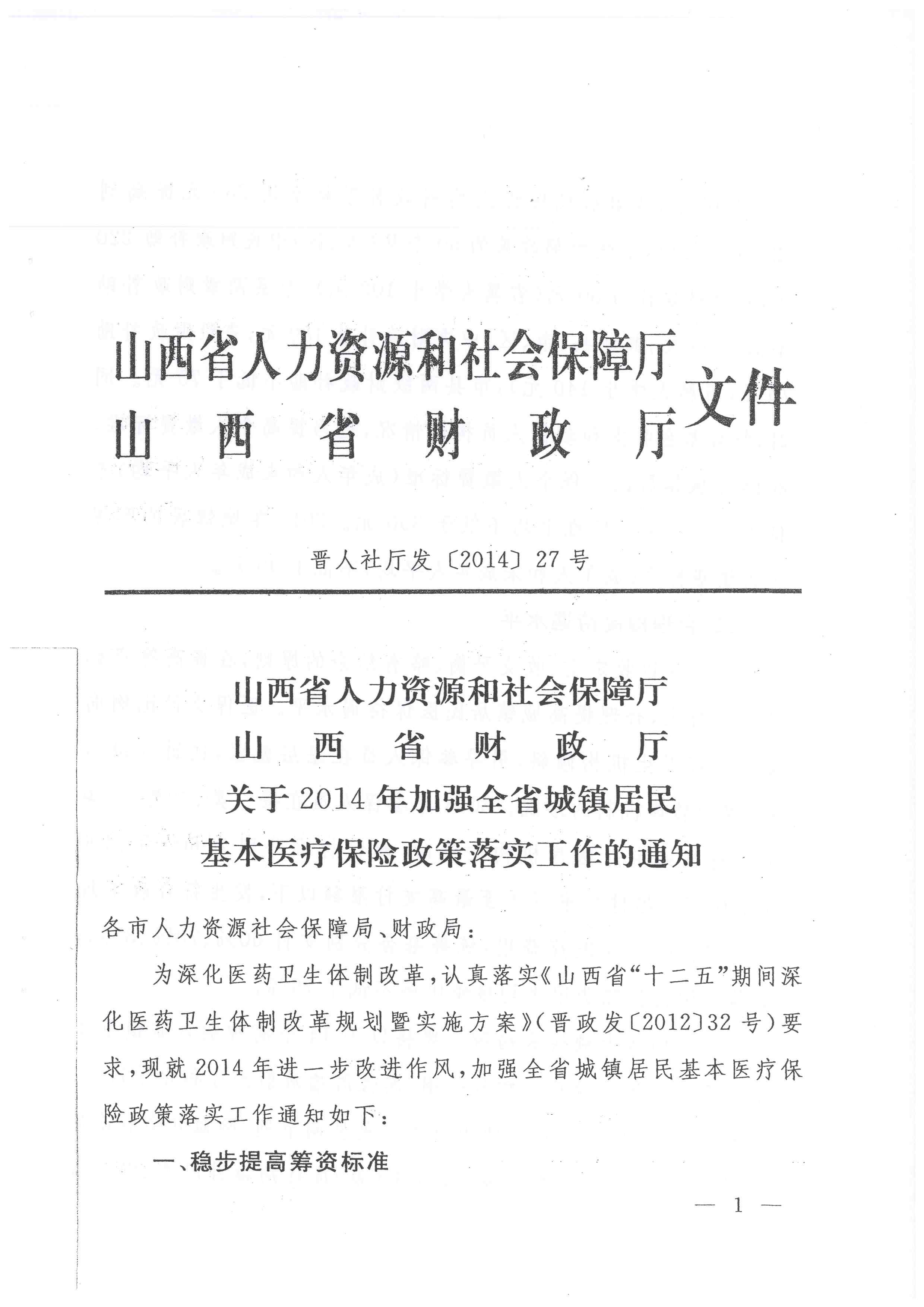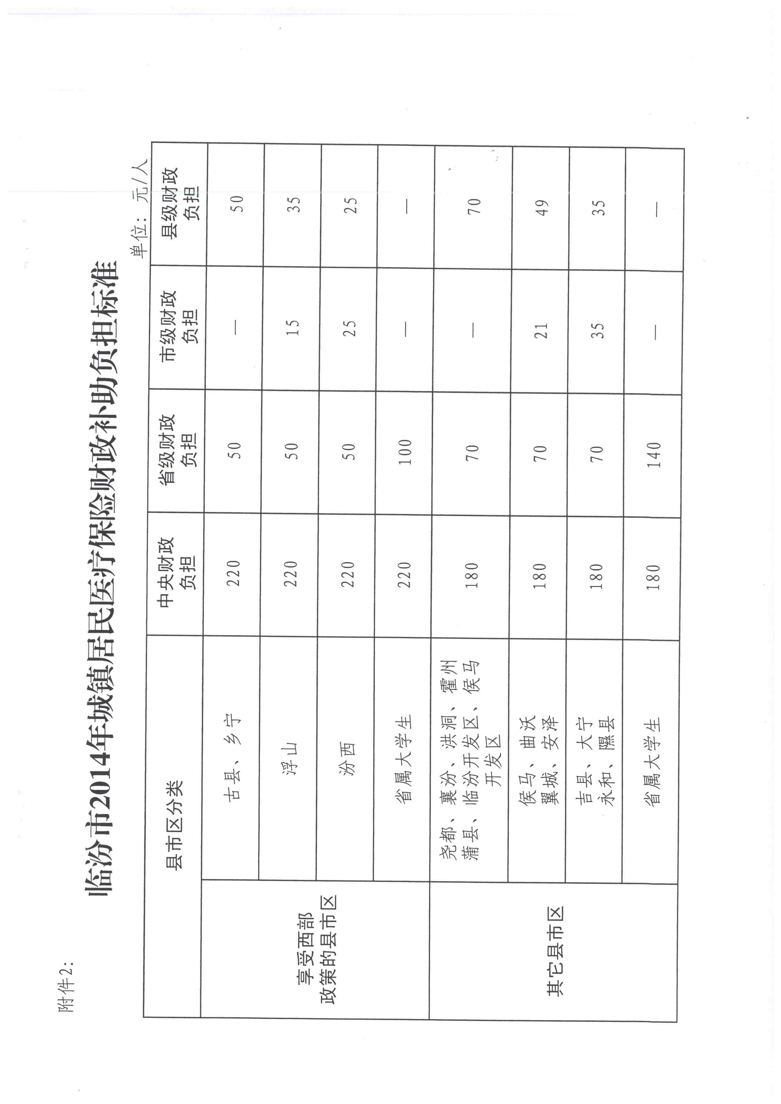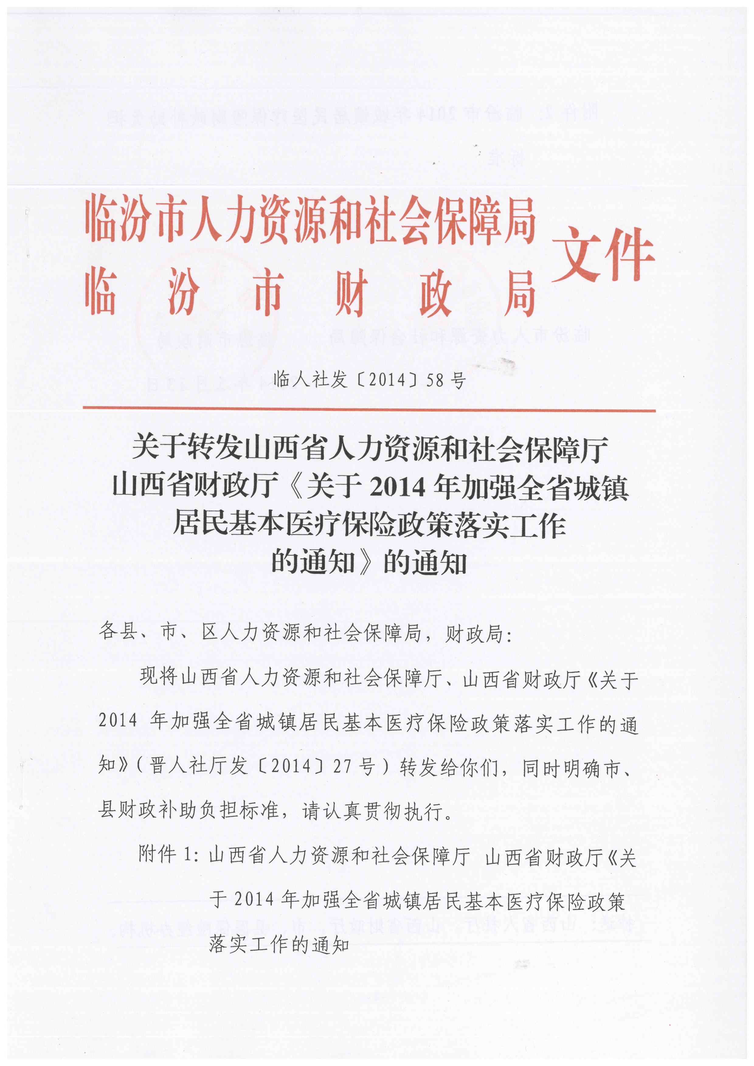 临汾市财政局转发《2014年加强全省城镇居民基本医疗保险政策落实工作的通知》