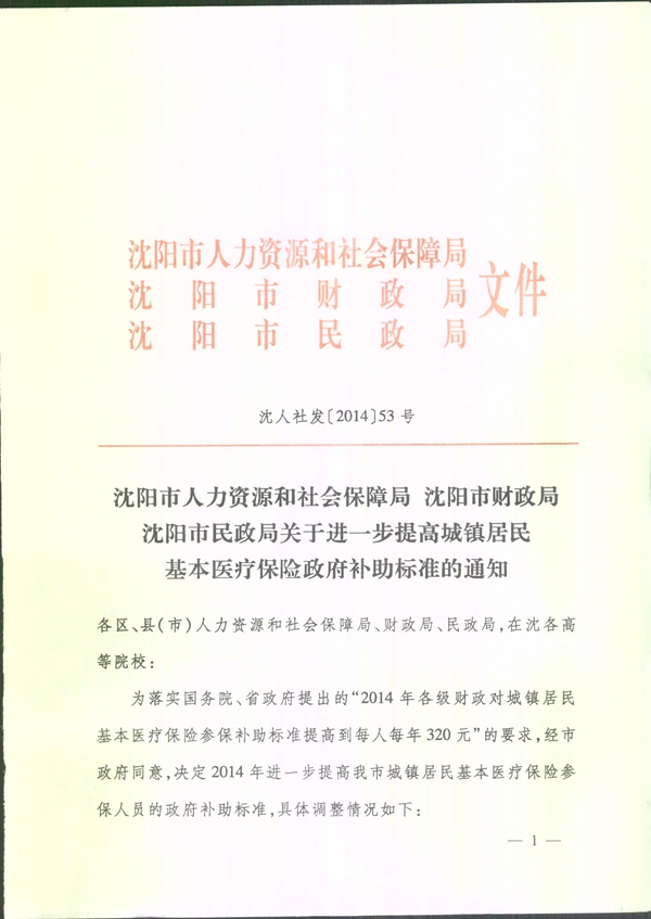 关于进一步提高城镇居民基本医疗保险政府补助标准的通知
