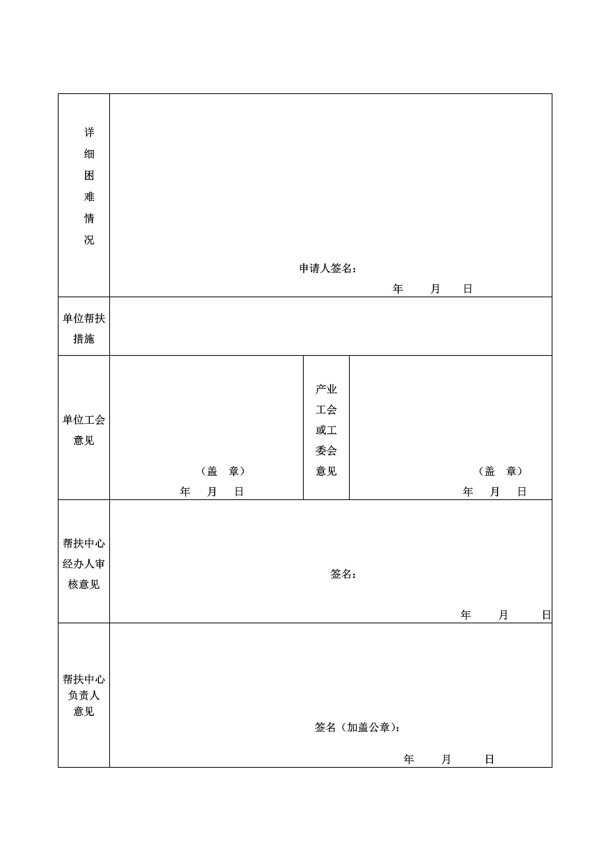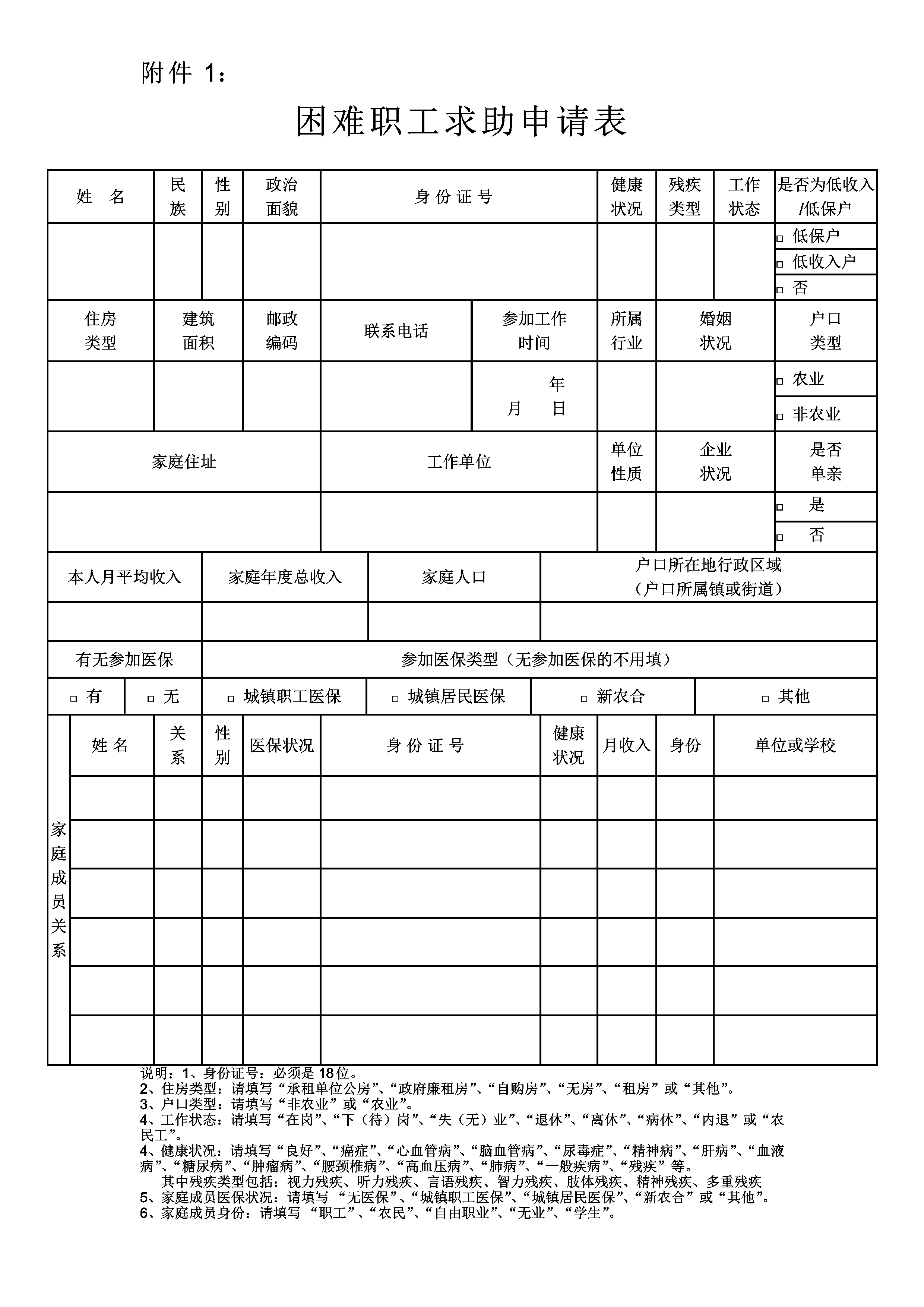 答:《江门市特困职工救助申请表》内容如下(可在本文后点击下载Word版)