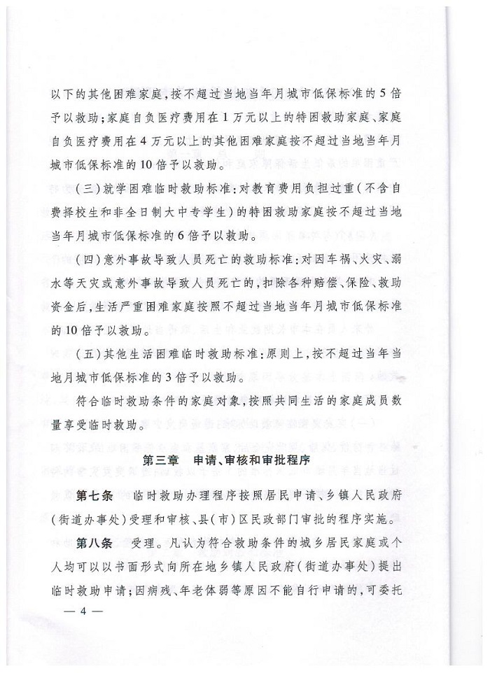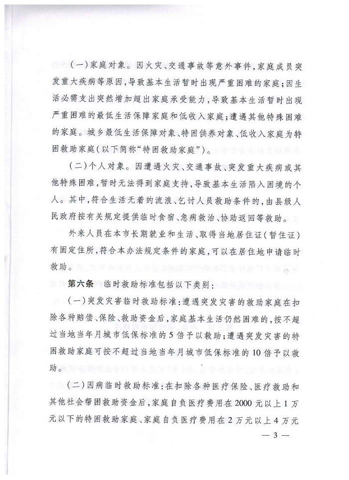 因病临时救助标准:在扣除各种医疗保险、医疗救助和其他社会救助资金后,家庭自负医疗费用在2000元以上1万元以下的特困救助家庭、家庭自负医疗费用在2万元以上4万元以下的其他困难家庭,按不超过当地当年月城市低保标准的5倍予以救助;家庭自负医疗费用在1万元以上的特困救助家庭、家庭自负医疗费用在4万元以上的其他困难家庭按不超过当地当年月城市低保标准的10倍予以救助。