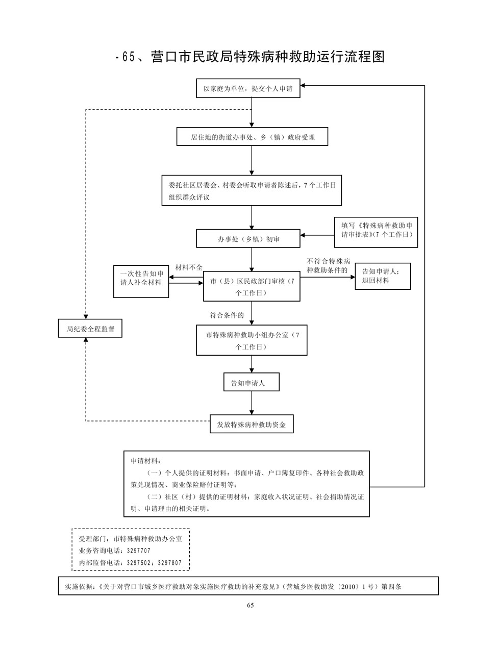 营口市民政局特殊病种救助运行流程图