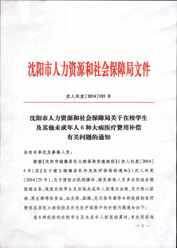沈阳关于在校学生及其他未成年人6种大病医疗费用补偿有关问题的通知1.jpg