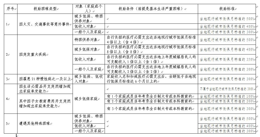 遭遇突发事件、意外伤害、重大疾病或其他特殊原因导致基本生活陷入困境,其他社会救助制度暂时无法覆盖或救助之后基本生活暂时仍有严重困难的家庭或个人,可随时提出临时救助申请。