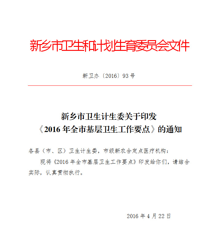 新乡市卫生和计划生育委员会办公室 2016年4月22日印发