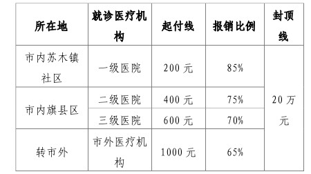 建档立卡的城乡 贫困居民, 起付线降低 50%, 报销比例提高 5%。 其他属于民政部门医疗救助对象的参保居民发生的医疗费用由其户籍所在地的民政部门按相关政策予以救助。