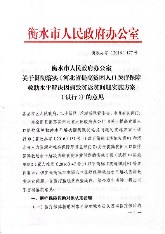 标题:衡水市人民政府办公室印发关于进一步深化基本医疗保险支付方式改革的实施方案的通知