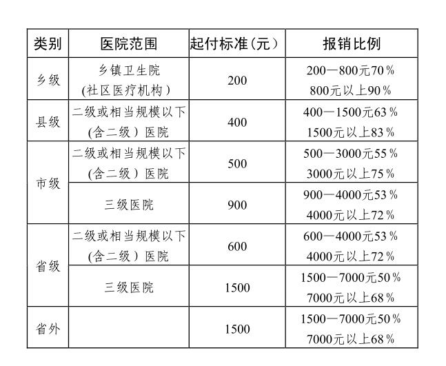 第十六条 住院医疗待遇。参保居民在定点医疗机构发生的政策范围内住院医疗费用,起付标准以下由个人支付;起付标准以上由住院统筹基金按比例支付,额度不超过住院统筹基金年度最高支付限额。