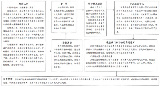 每年,市医保中心安排具体检诊时间,指定医疗机构、组织专家为申请慢性病门诊补助的参保人员进行检诊认定。