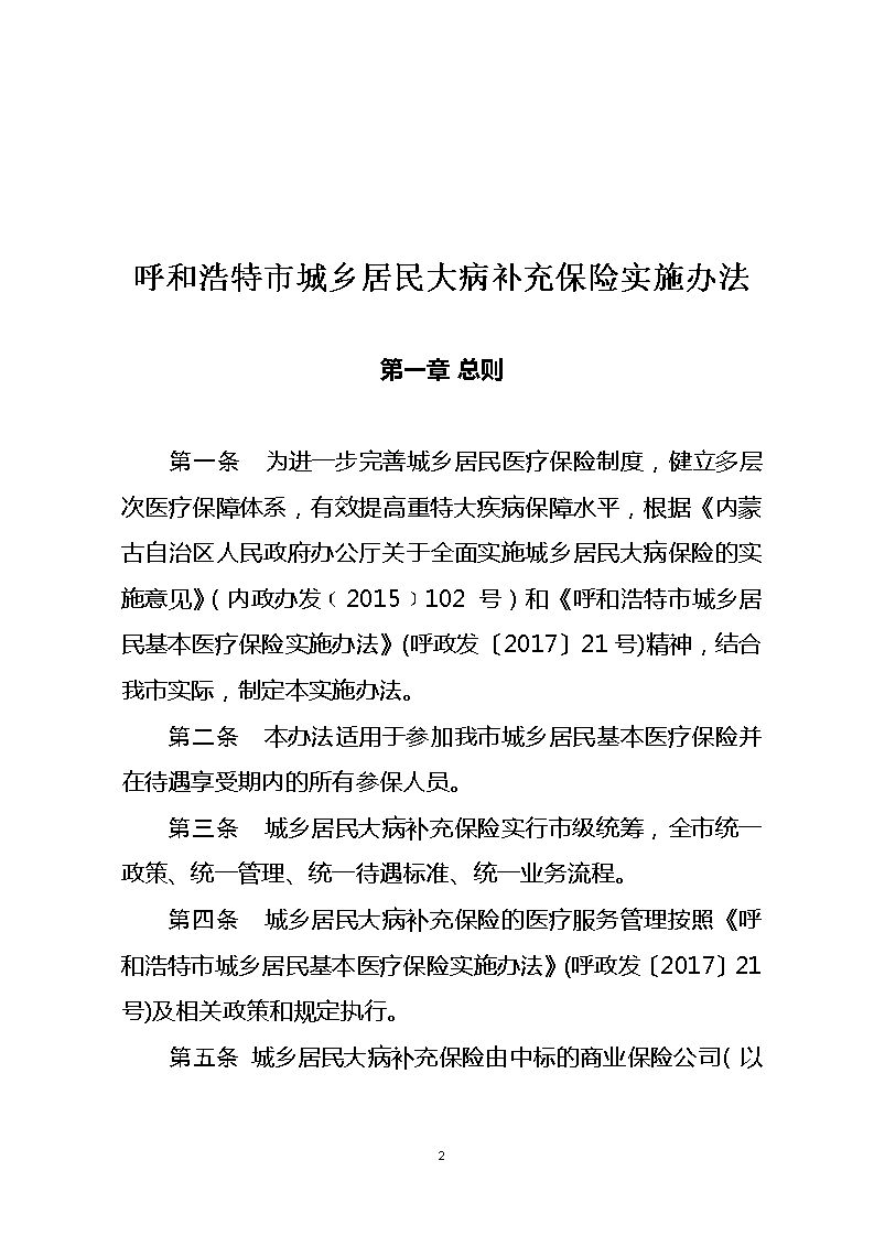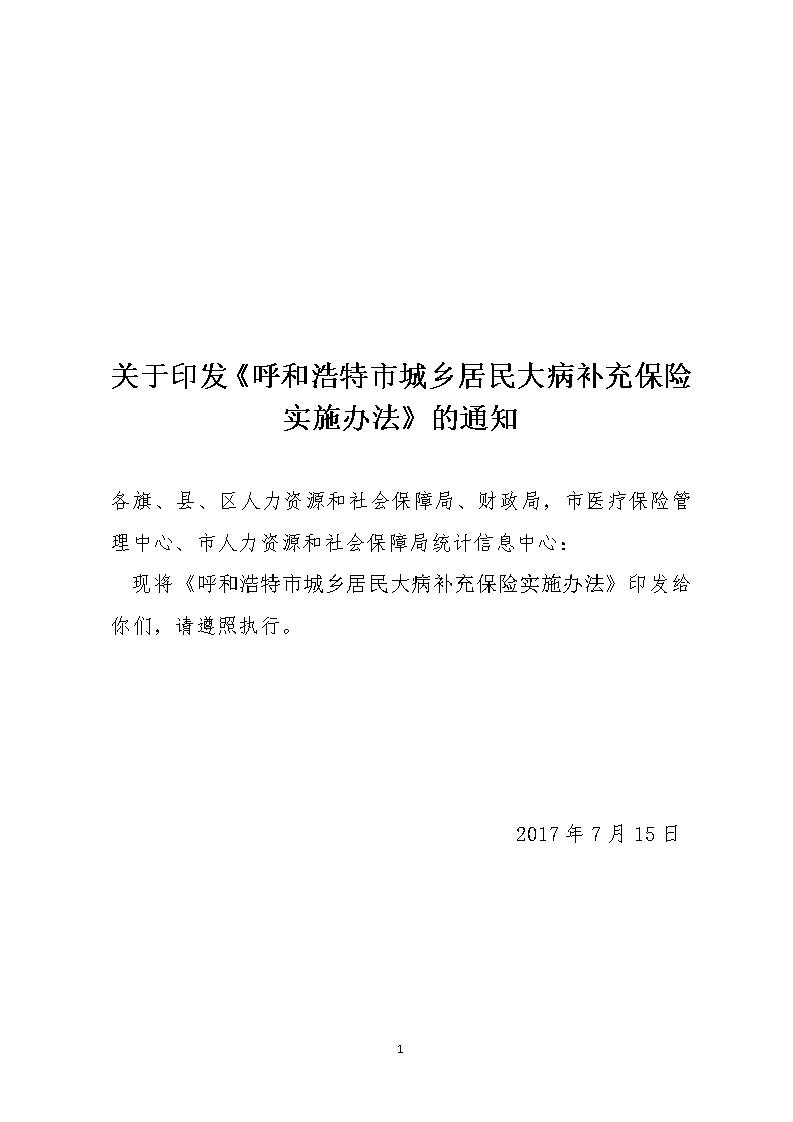 标题:呼和浩特市城乡居民大病补充保险实施办法