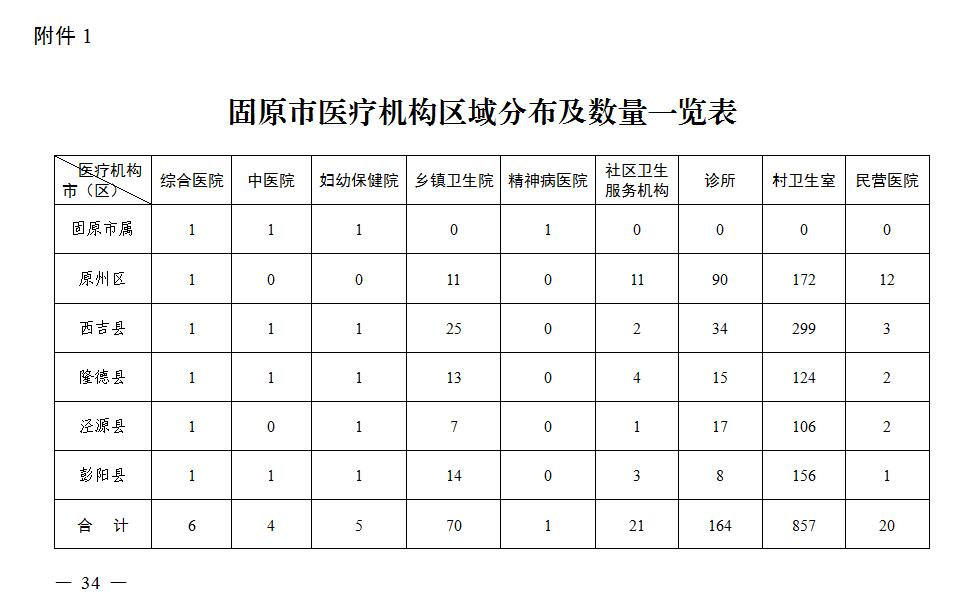 1.固原市医疗机构区域分布及数量一览表