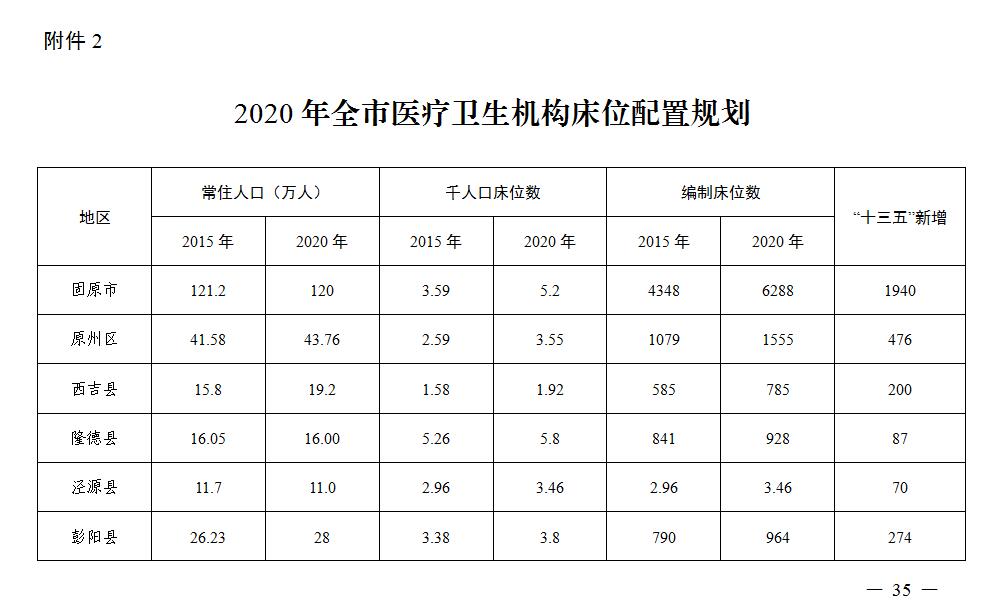 2.2020年全市医疗卫生机构床位配置规划