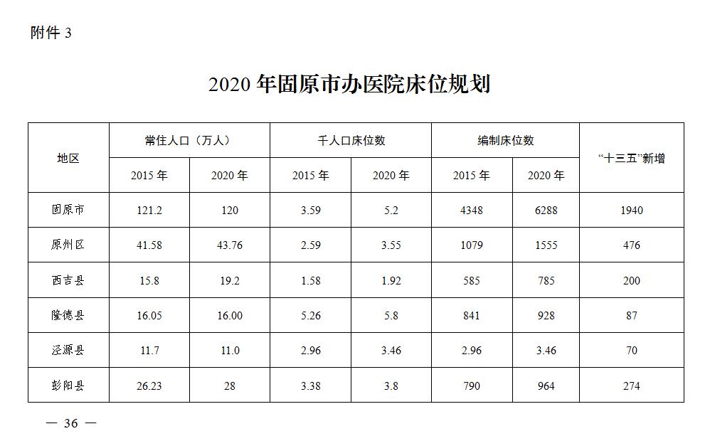 3.2020年固原市办医院床位规划
