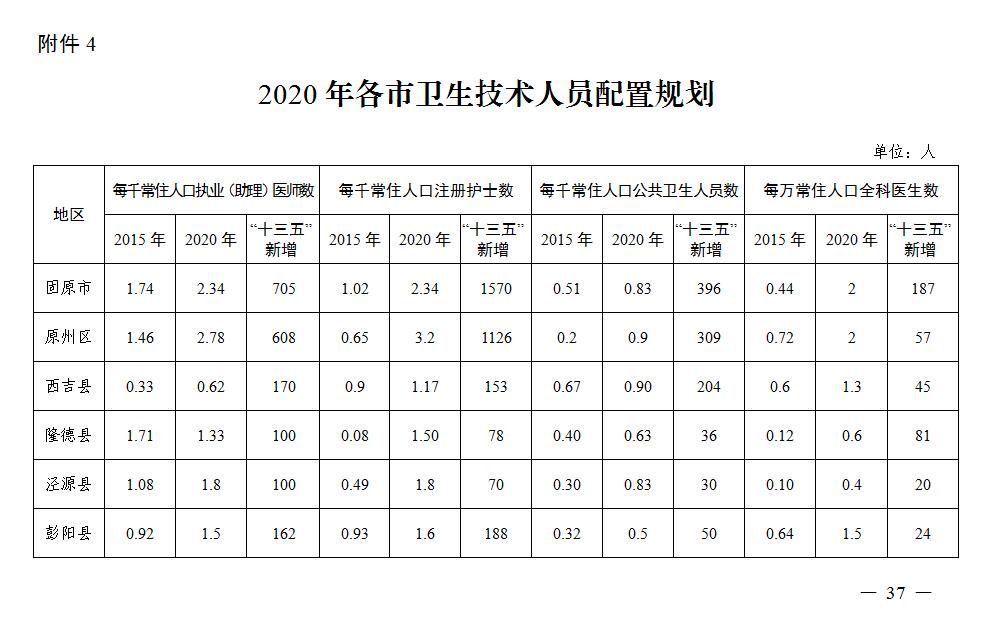4.2020年各市卫生技术人员配置规划
