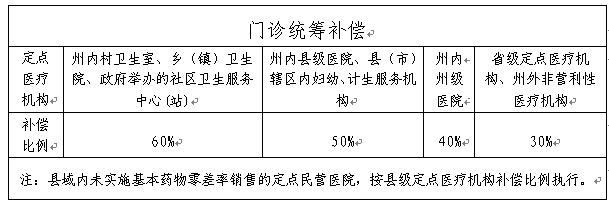全州范围内统一实行门诊统筹补偿+住院统筹补偿+重大疾病保障+大病保险相结合的补偿模式。